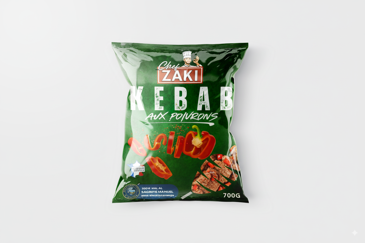 Ce kebab aux poivrons de viande halal surgelé est distribué par Chef Zaki, fournisseur spécialisé pour professionnels de la restauration rapide. Cette référence est destinée aux snacks, food trucks et restaurants proposant une offre kebab halal à leur clientèle.