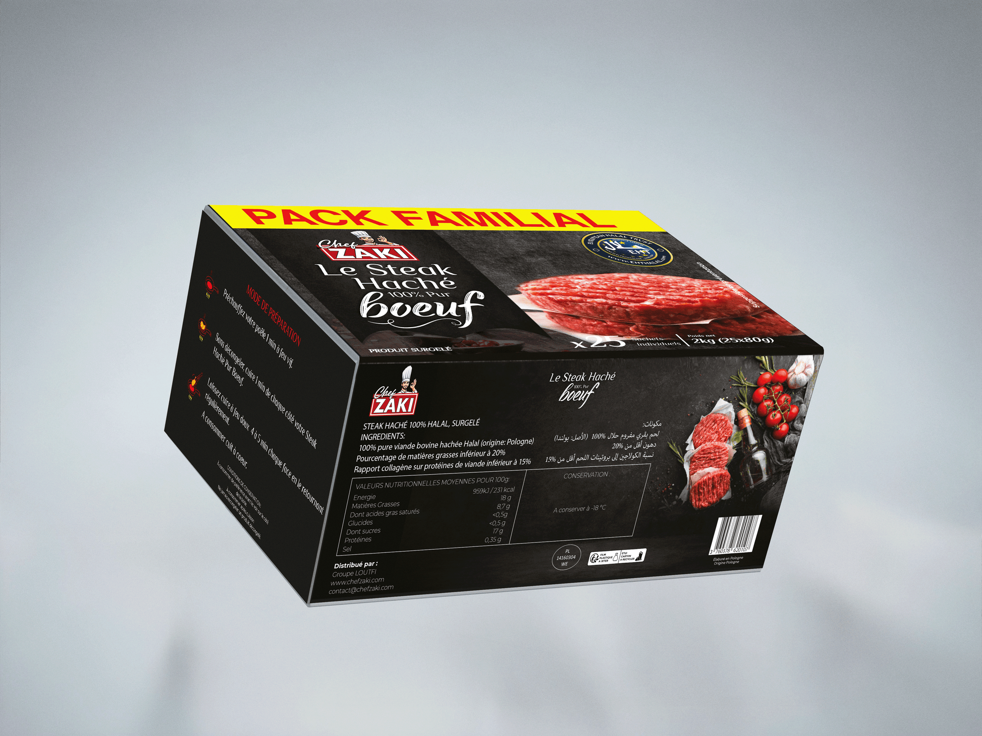 Ce steak de bœuf halal surgelé est distribué par Chef Zaki, fournisseur spécialisé pour professionnels de la restauration. Référence destinée aux établissements proposant une carte de viandes halal.