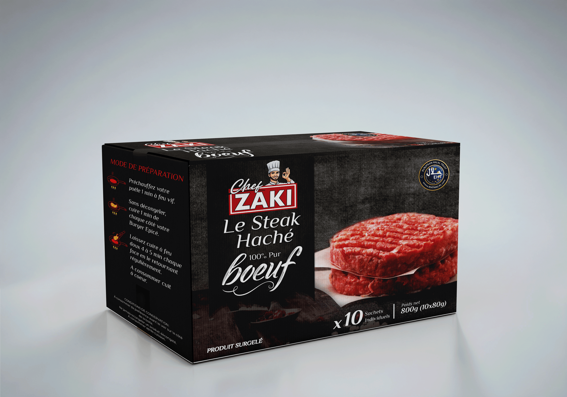 Ce steak de bœuf halal surgelé est distribué par Chef Zaki, fournisseur spécialisé pour professionnels de la restauration. Référence destinée aux établissements proposant une carte de viandes halal.